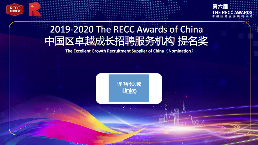 连智领域Links获RECC中国区卓越成长招聘服务机构提名奖