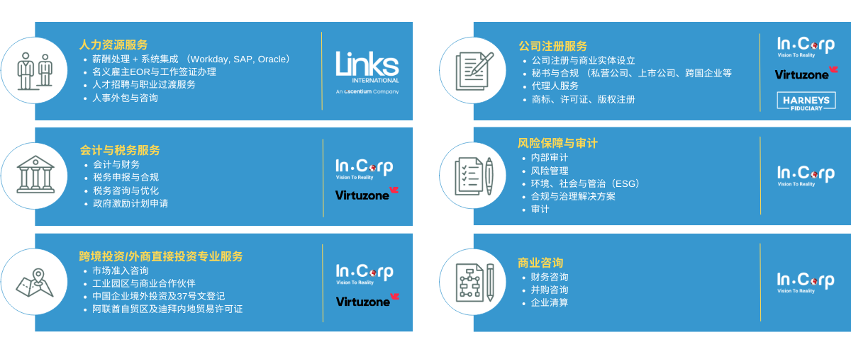 从公司设立到简化人力资源与财务运营,我们的服务助力您轻松拓展全球业务。